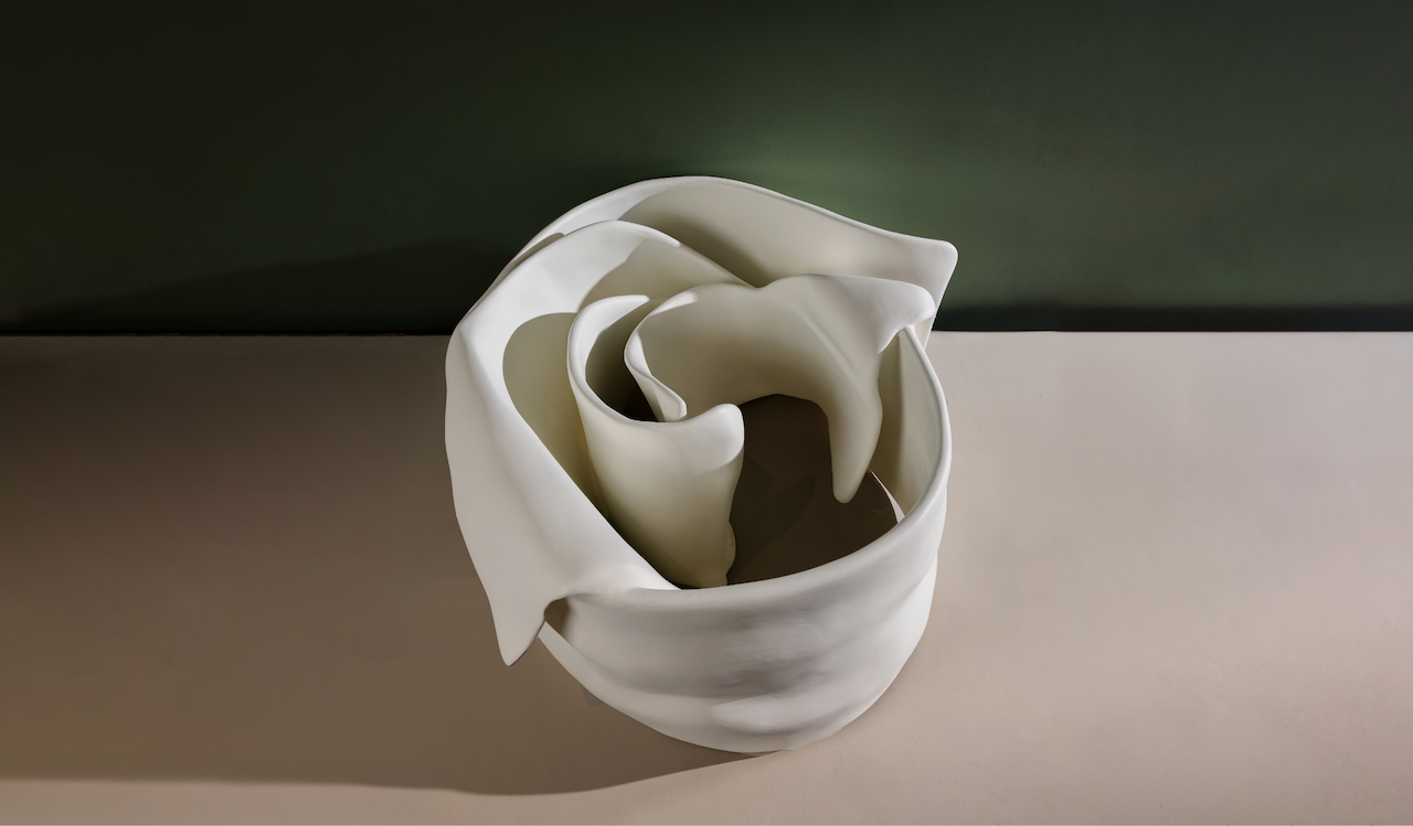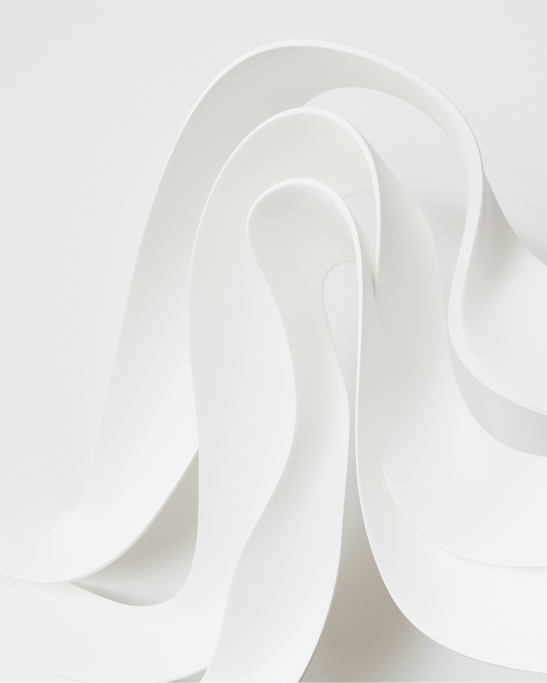 Functional objects transform into sculptural statements, with utility being an undercurrent to the flowing curves. Across shapes ranging from an uneven ovoid, a sharp convex blade, to a flowing ribbon, the shapes are meant to evoke familiarity in structure, and on closer inspection, inspire joy when audience acknowledges the utility.