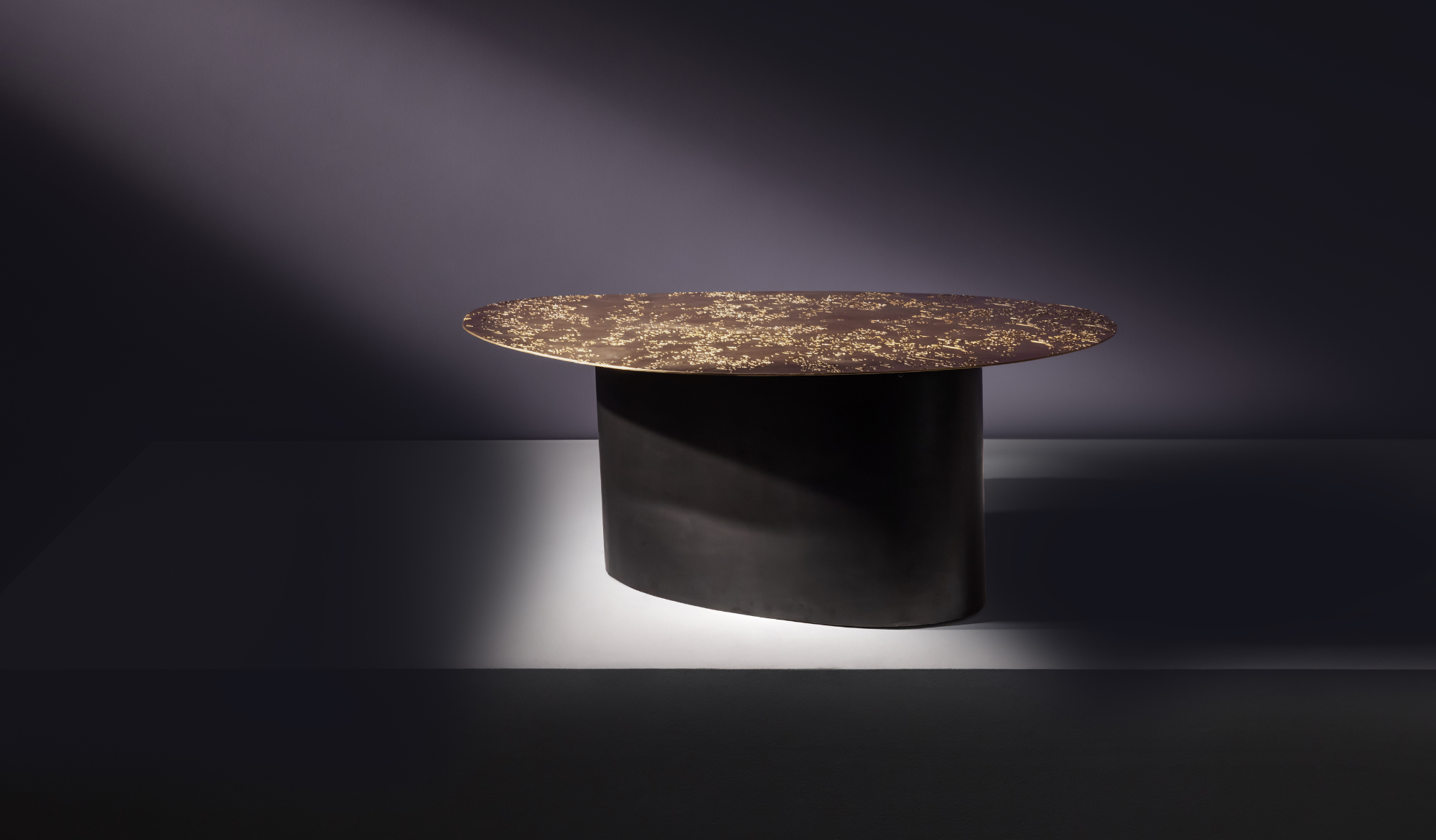 Handcrafted in India, this process ensures that each creation is one of a kind – even when an order is repeated, no two pieces can ever be identical. The individuality of every fold, crease, and hammered plane reflects the artisan’s hand and the organic unpredictability of the material itself.