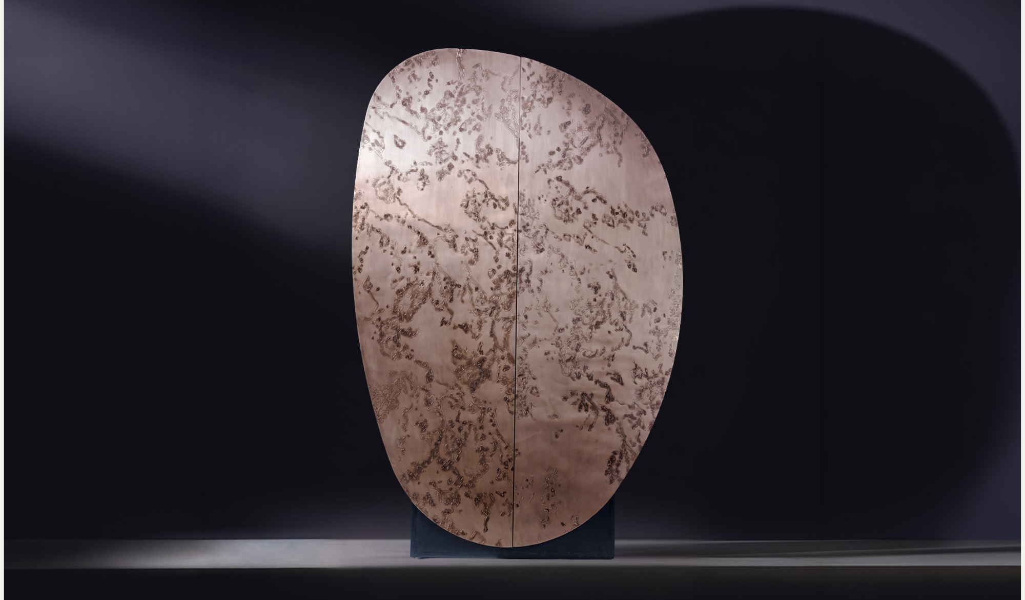 Every piece in the Vagues de Métal collection is the result of only hands-driven process. Sheets of metal are cut, hammered, and molded by skilled artisans, then composed piece by piece to form richly textured surfaces that embody both strength and movement.